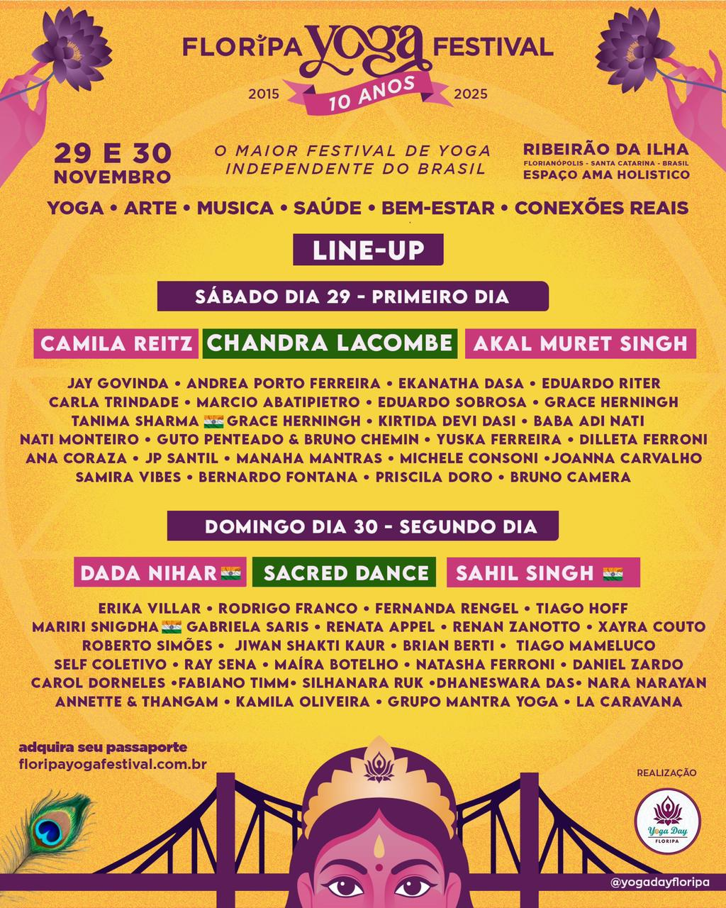 Nossa missão é celebrar e disseminar os conhecimentos milenares do Yoga em uma imersão completa de 2 dias com 27 horas de programação e mais de 40 profissionais — professores, terapeutas, músicos e artistas compartilhando práticas transformadoras para corpo, mente e alma.